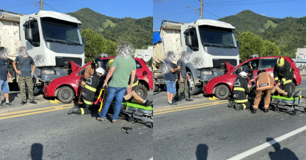 Segundo as primeiras informações, a colisão envolveu um caminhão caçamba e um carro de passeio da cidade de Ascurra, no trevo do Posto Ferrari, ponto conhecido pelo intenso fluxo de veículos.