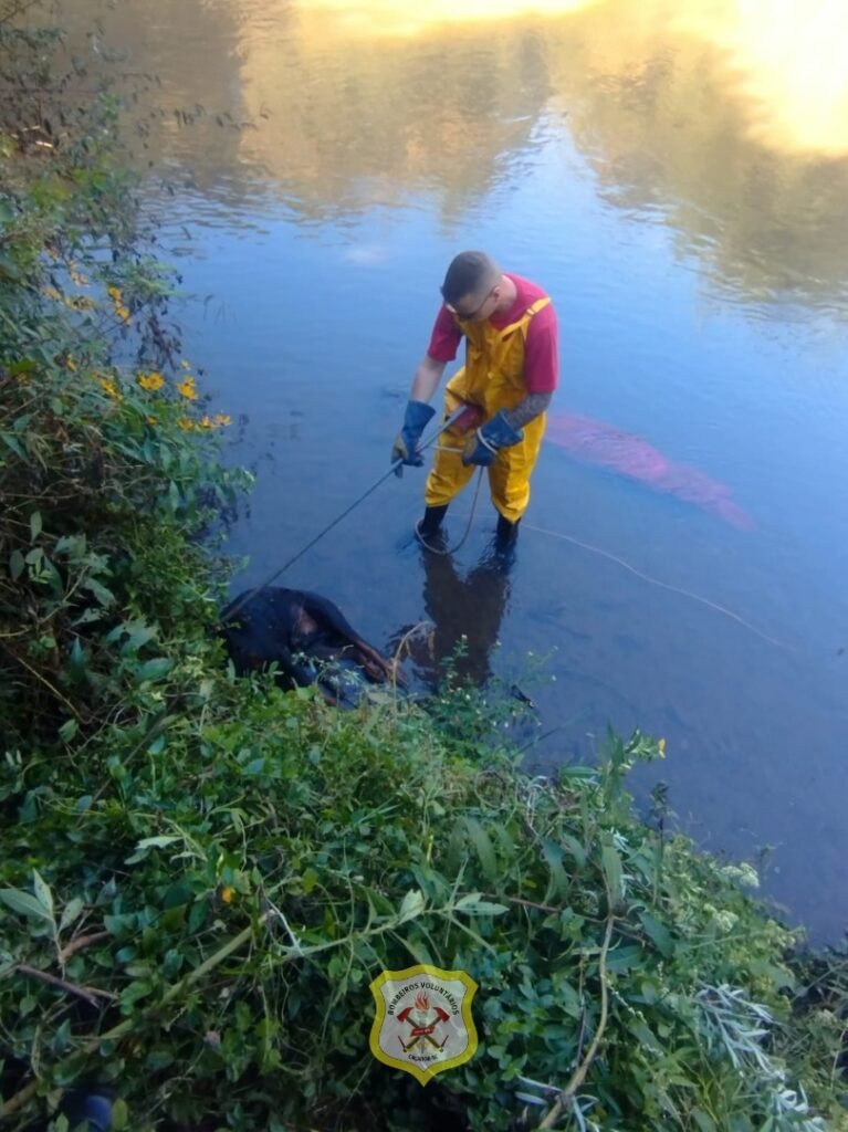 Um caso que inicialmente gerou apreensão terminou com o resgate de um animal na cidade de Caçador. Os Bombeiros Voluntários foram acionados para uma ocorrência que, em um primeiro momento, indicava a possível presença de um corpo no rio.