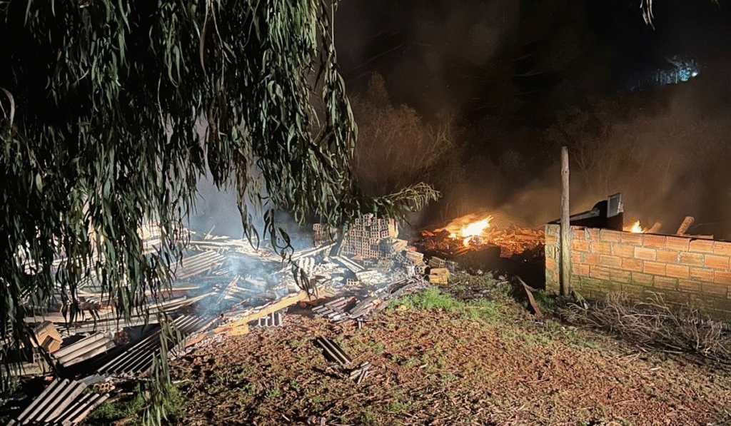 Incêndio destrói casa e corpo carbonizado é encontrado em São Joaquim