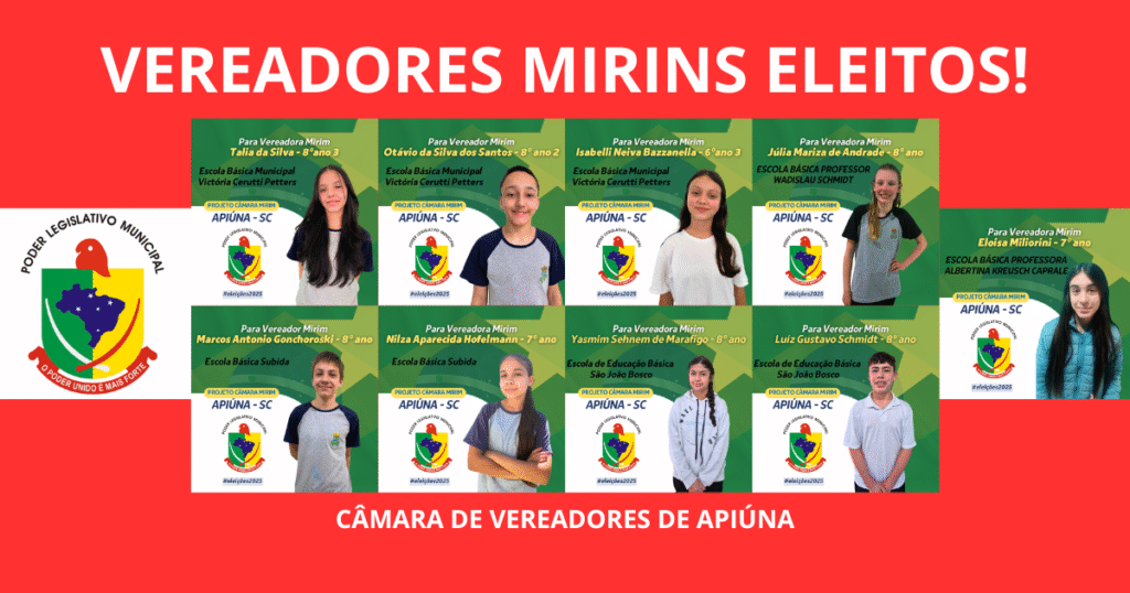 A noite desta quinta-feira, 13 de novembro de 2025, foi marcada por cidadania, engajamento estudantil e muita expectativa nas unidades escolares de Apiúna. A Eleição Mirim da Câmara de Vereadores mobilizou alunos de diferentes escolas municipais e estaduais, que participaram de um processo eleitoral completo, com campanha, votação e apuração, vivenciando de perto como funciona […]