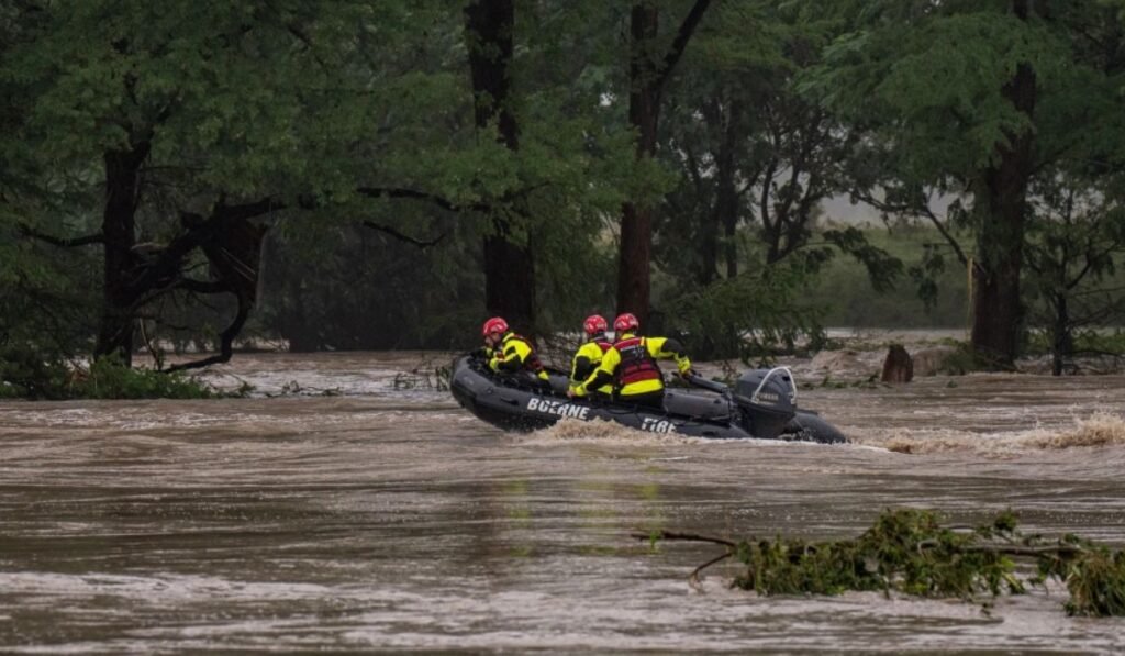 A maioria dos participantes do acampamento foi resgatada em áreas mais elevadas, mas o cenário segue crítico. Moradores da cidade de Kerrville precisaram fugir de barco, passando por linhas de energia derrubadas.