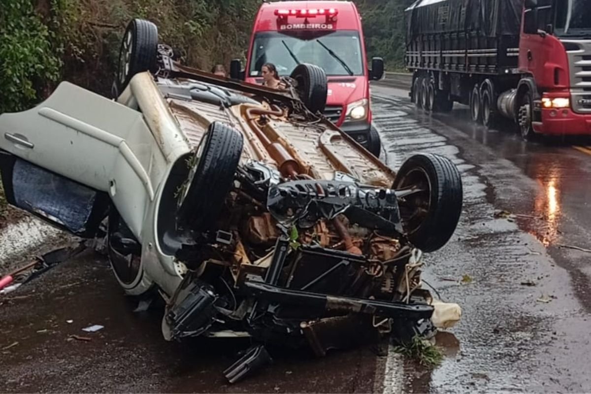 Jovem de 18 anos morre após carro sair da pista e capotar na BR-153 em SC