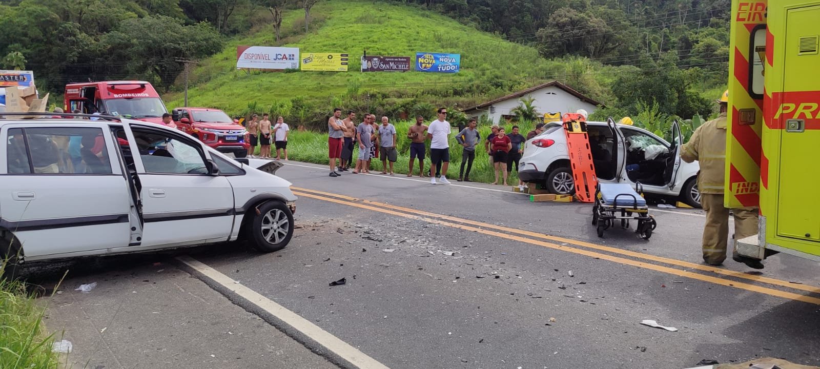 Gestante está entre vítimas de colisão frontal grave na BR-470 na cidade de RODEIO.