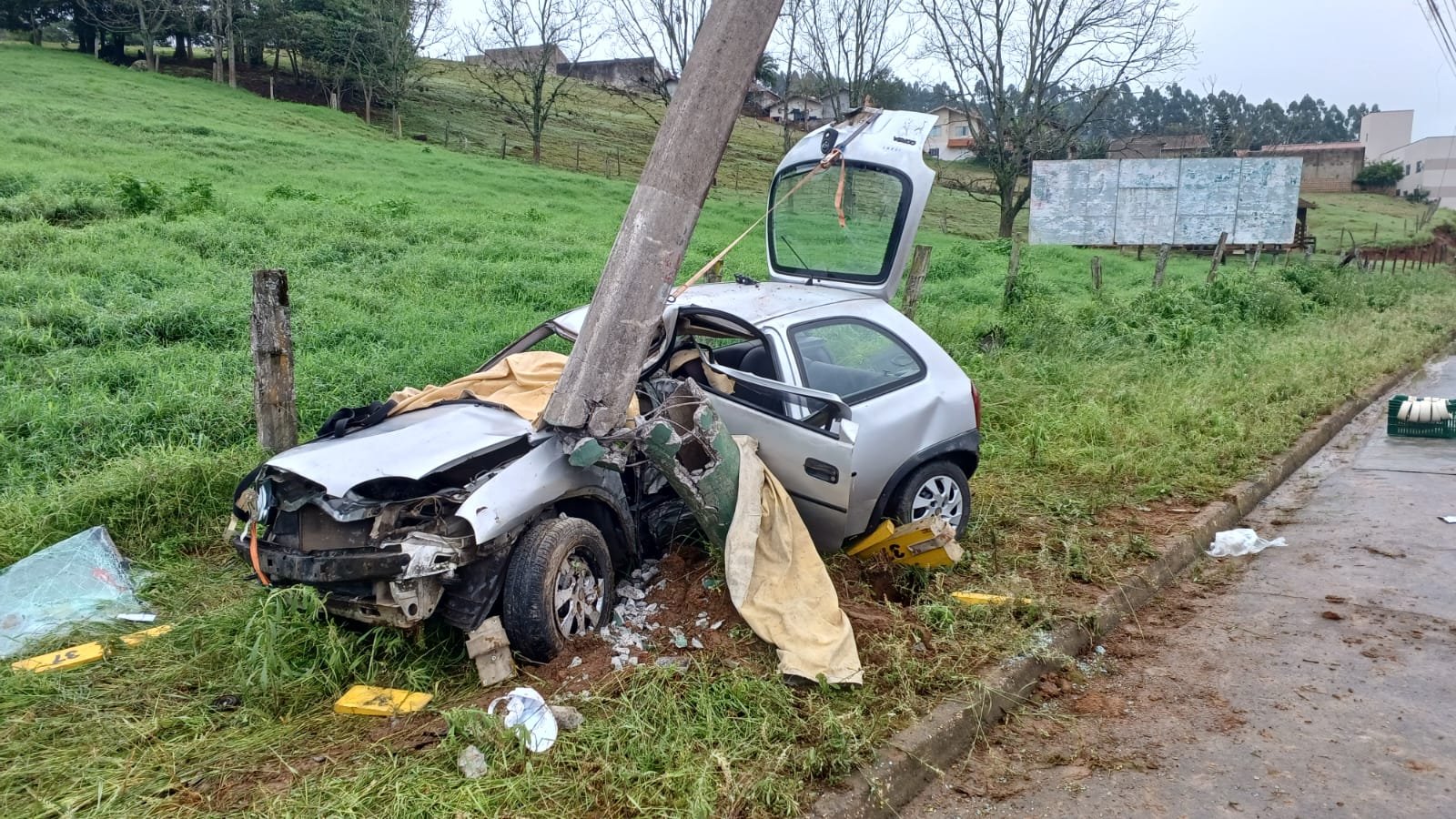 🚨 Veículo bate em poste e mobiliza bombeiros em Ascurra nesta tarde de quarta-feira (30).