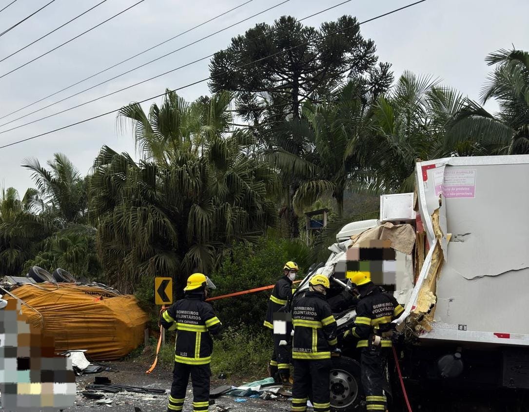 Gestante está entre vítimas de colisão frontal grave na BR-470 na cidade de RODEIO.