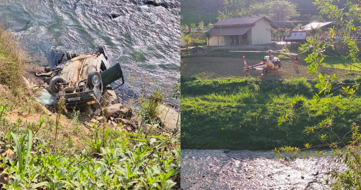 Grave acidente em Apiúna: carro cai em ribanceira na localidade de Neisse Central, Arcanjo 03 acionado.
