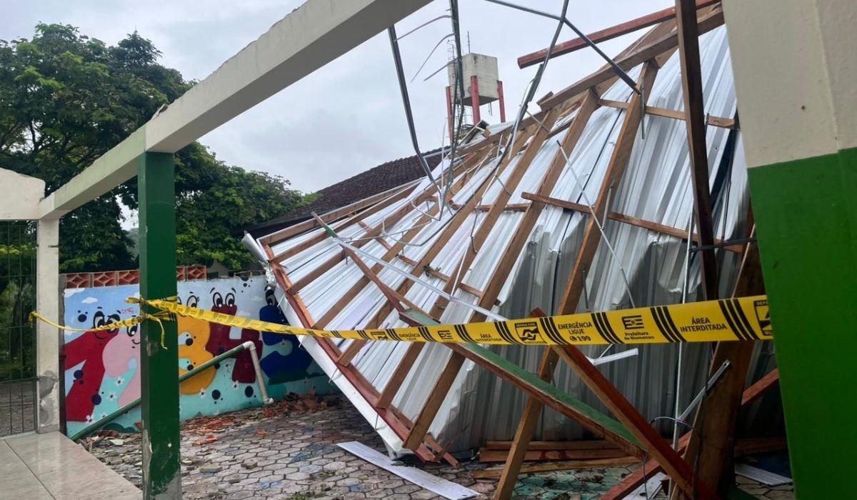 Temporal danifica telhado de escola e aulas são suspensas em Blumenau