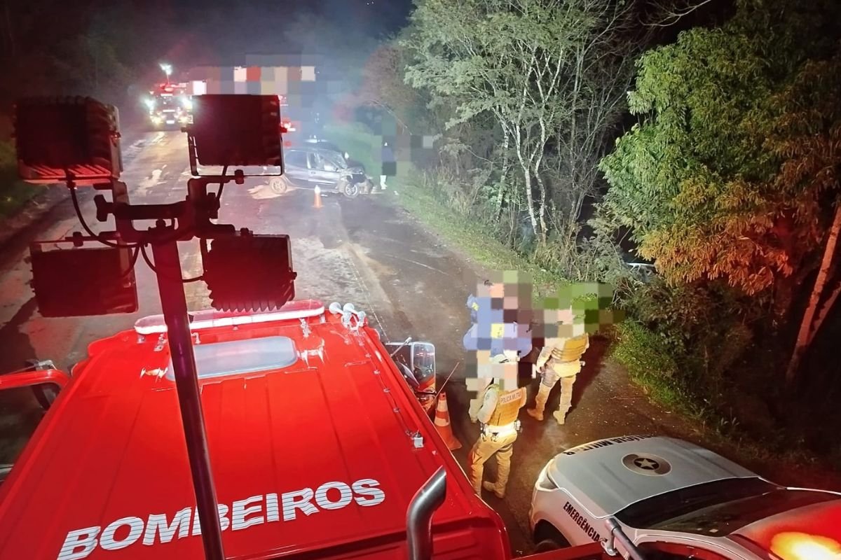 Fuga após assalto termina com carro em chamas, dois mortos e crianças feridas em SC