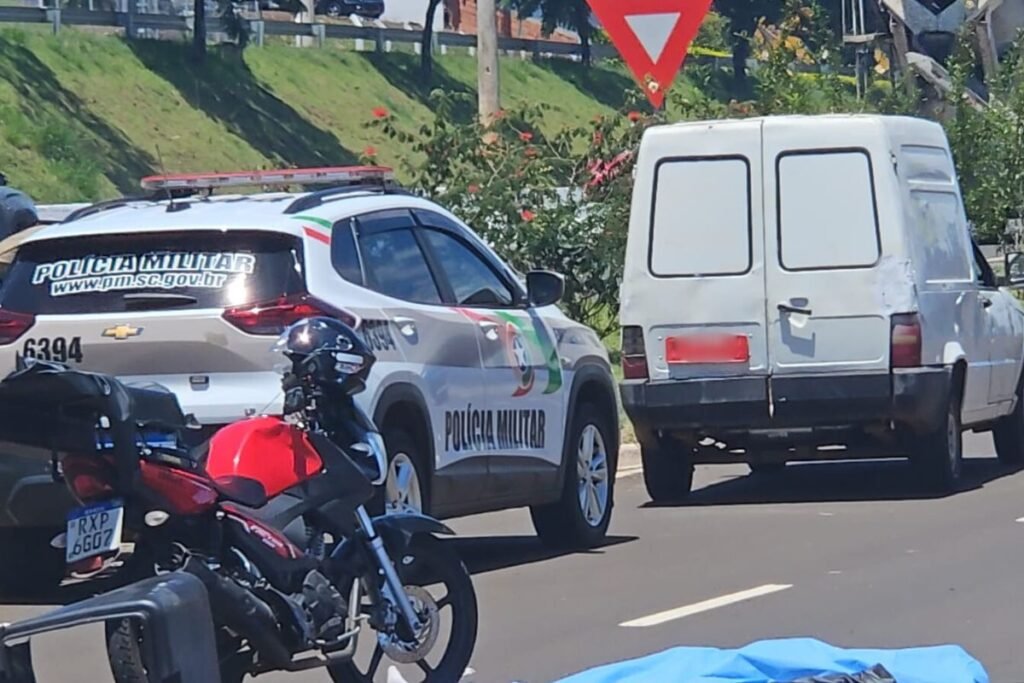 Um motociclista morreu após ser atropelado por um caminhão em um acidente de trânsito que envolveu quatro veículos na BR-480, em Chapecó, no Oeste de Santa Catarina, no início da tarde desta terça-feira (18).