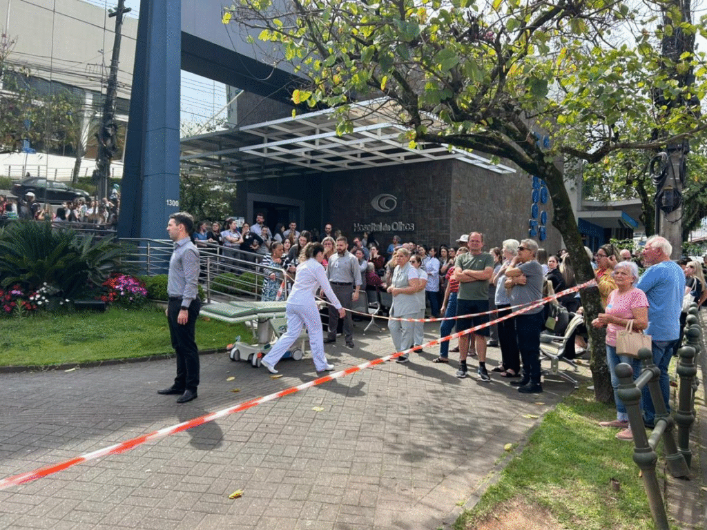 Segundo o relatório do Corpo de Bombeiros, ao menos cinco pessoas ficaram feridas no acidente no hospital de Blumenau. A ocorrência foi atendida por volta das 9h04, na manhã desta quarta-feira (5).