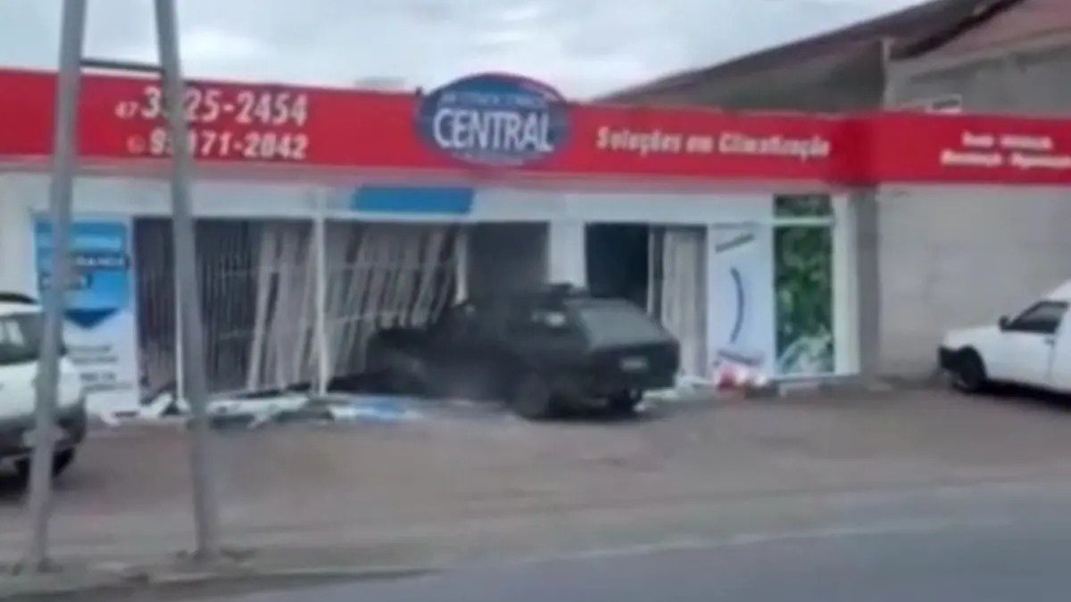 Ataque de fúria em Blumenau termina com fachada de loja destruída pelo próprio dono