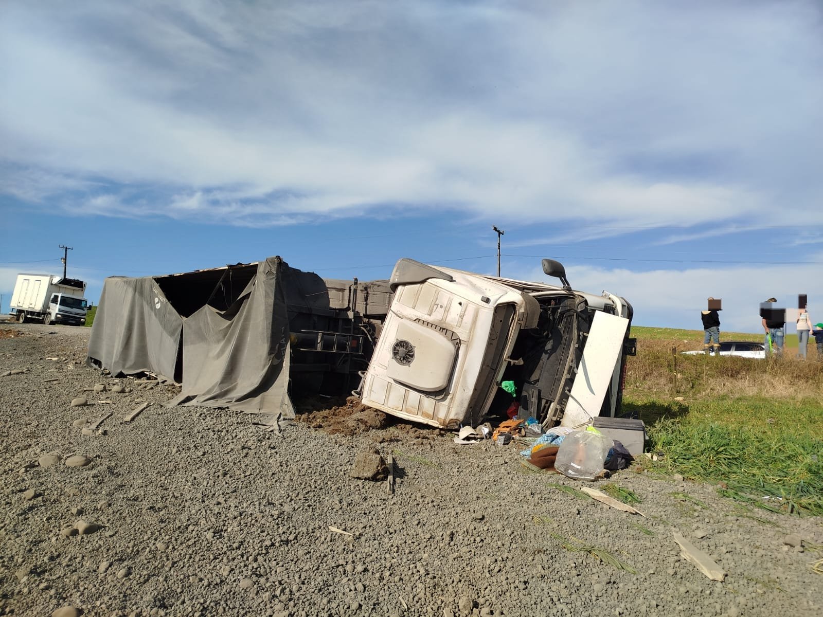 Motorista é ejetado de cabine após capotamento de carreta em Imbuia