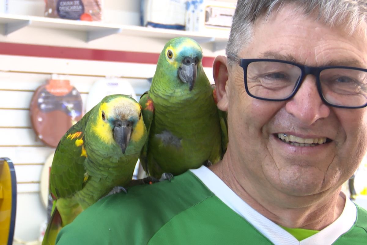 Chapecó (SC) tem nova sensação: papagaios que caminham com morador viralizam nas redes