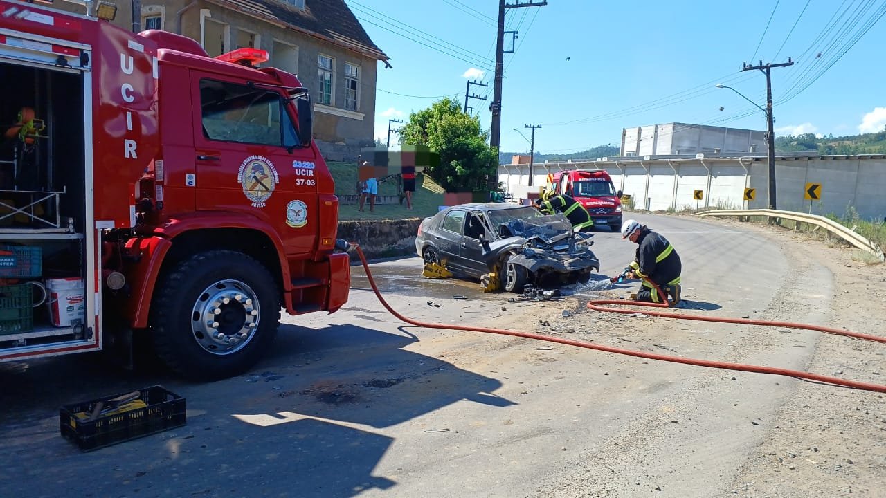 Colisão entre carro e caminhão deixa vítima presa às ferragens e bloqueia a SC-340 em Presidente Getúlio
