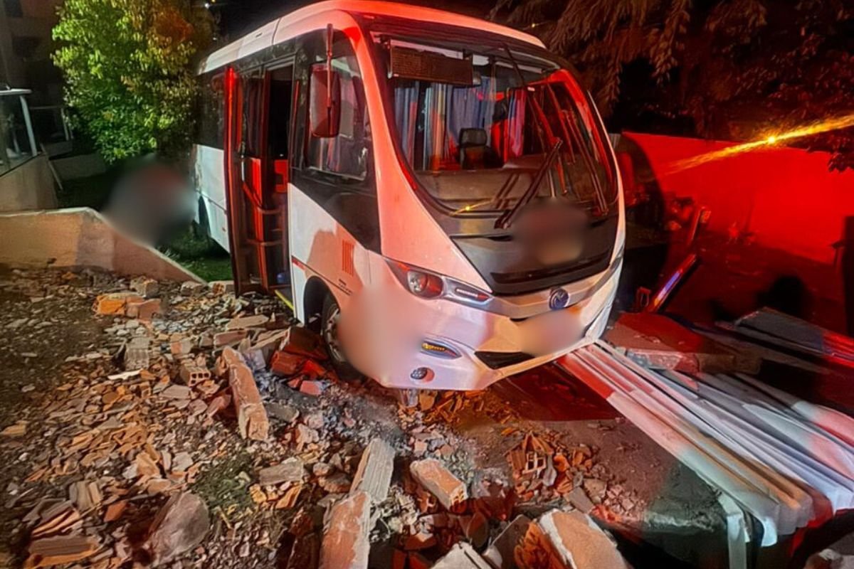 Micro-ônibus sem freios atropela motorista e invade pátio de residência em Concórdia