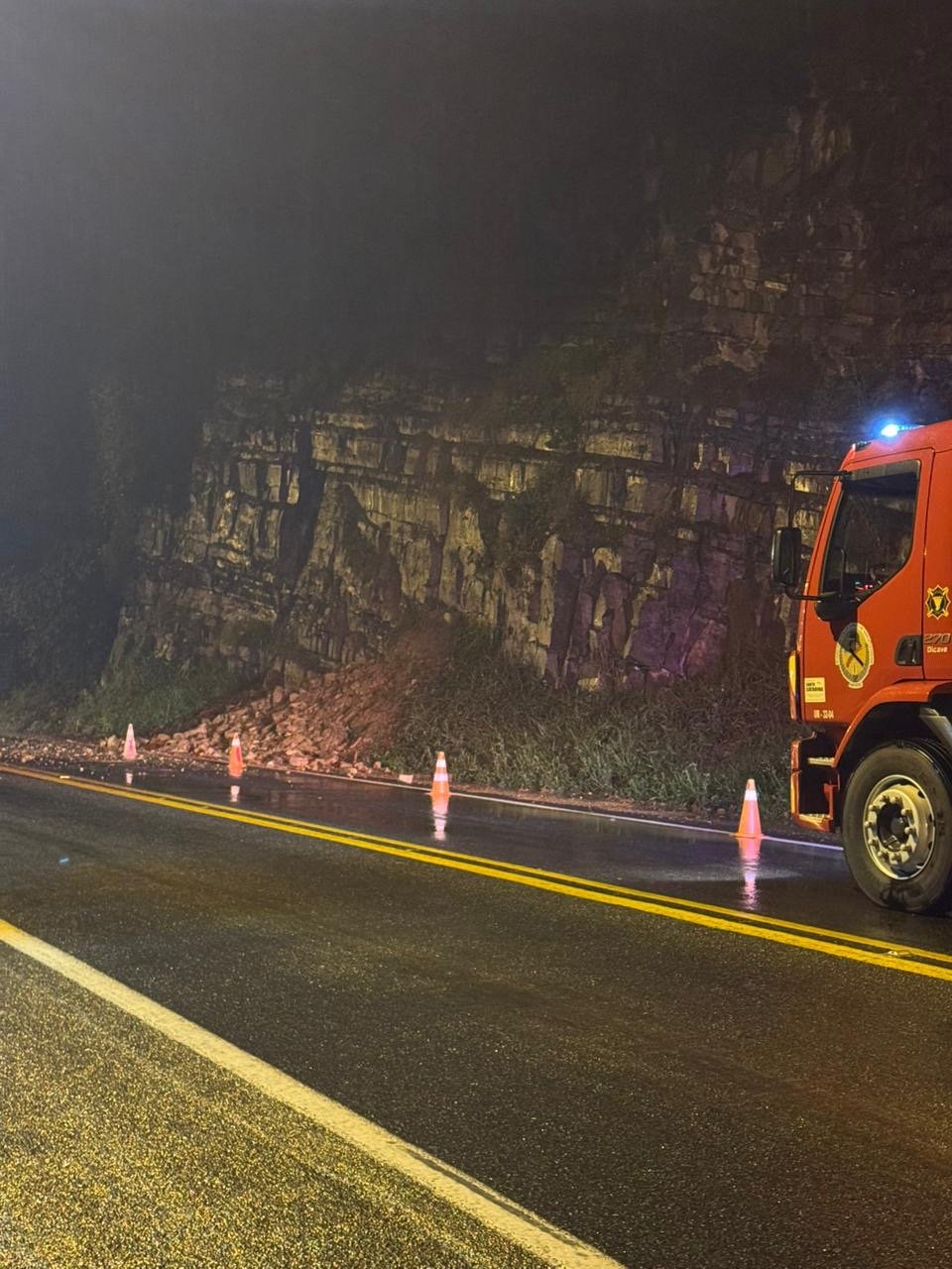 Queda de barreira interrompe parcialmente o trânsito na BR-470 em Apiúna
