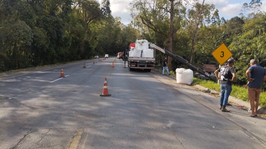 A pista está sinalizada com cones e parte da via segue ocupada pela operação. A previsão inicial era de 90 minutos de bloqueio, podendo haver atrasos conforme a complexidade do serviço.