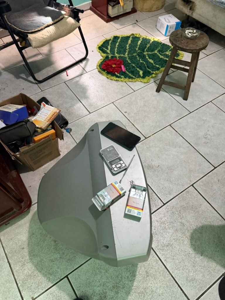 Durante a abordagem, um dos detidos confessou que havia mais drogas e apetrechos na sala. Na busca, foram apreendidos 15 (quinze) buchas de cocaína, 15 (quinze) buchas de crack, 02 (duas) porções de maconha, 01 (uma) bucha maior de cocaína para fracionamento, 01 (uma) balança de precisão, facas e tábua de plástico com resquícios de drogas, além de dois aparelhos celulares.