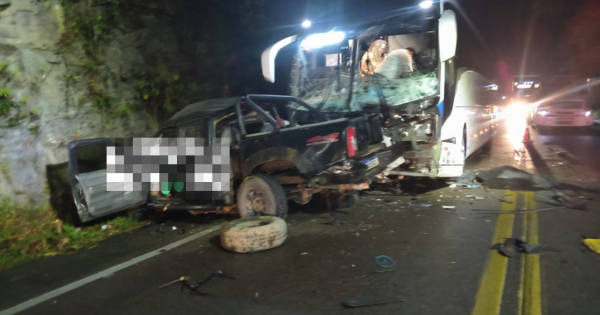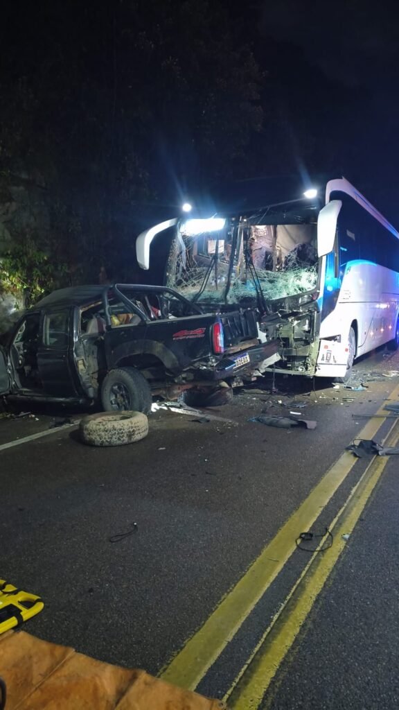 Colisão envolve camionete e ônibus; vítimas ainda não foram identificadas