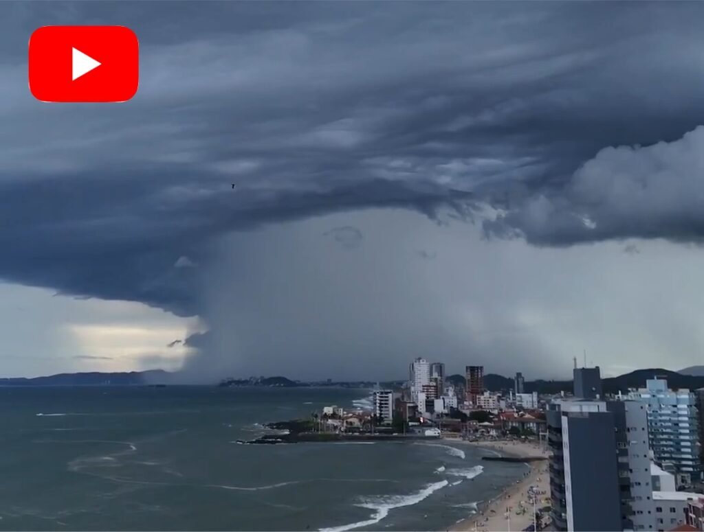 Um fenômeno meteorológico impressionante chamou atenção de moradores e banhistas em Barra Velha, no Litoral Norte de Santa Catarina, neste domingo (11). Um vídeo que circula nas redes sociais mostra uma nuvem gigante se aproximando rapidamente do litoral, transformando o dia em noite e dando origem a uma intensa “cortina de chuva” que encobriu o céu em poucos minutos.