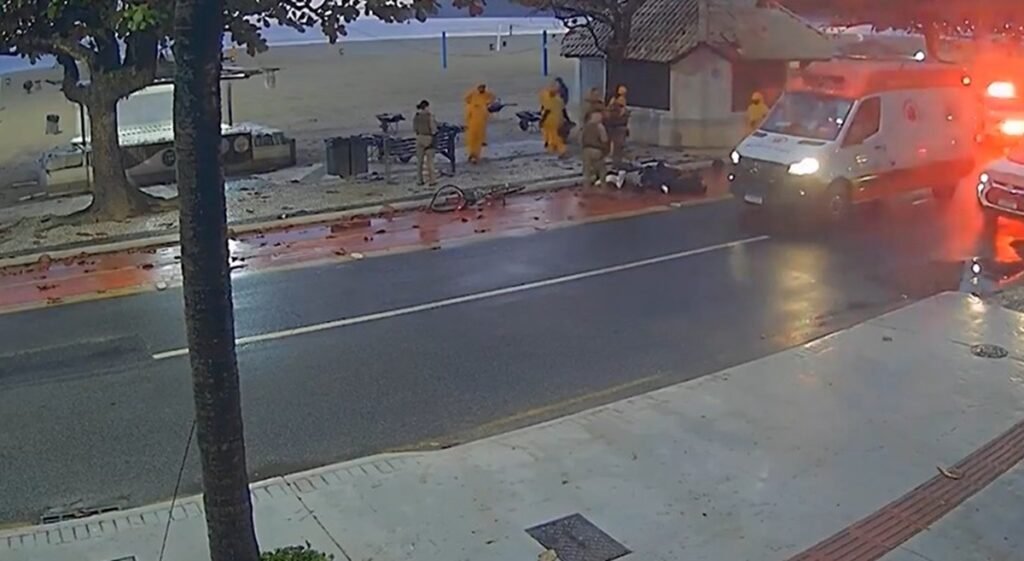 Imagens de uma câmera de segurança mostram o momento em que a motocicleta invade a ciclofaixa e acaba batendo contra a bicicleta. A Polícia Militar foi chamada para atender a ocorrência e, ao verificar o sinistro, chamou o Samu.